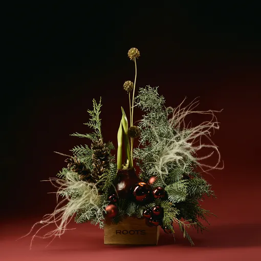На секундочку отвлечемся от нарядов. Мы просто обязаны спросить: а ты позаботилась о праздничном декоре? Если все никак не успевается, поделимся наводкой: в преддверии Нового года премиальный цветочный проект ROOTS презентует новую еловую коллекцию. Это, считай, готовый презент, если ты идешь в гости на праздник, и в целом классная идея для декора собственного дома.