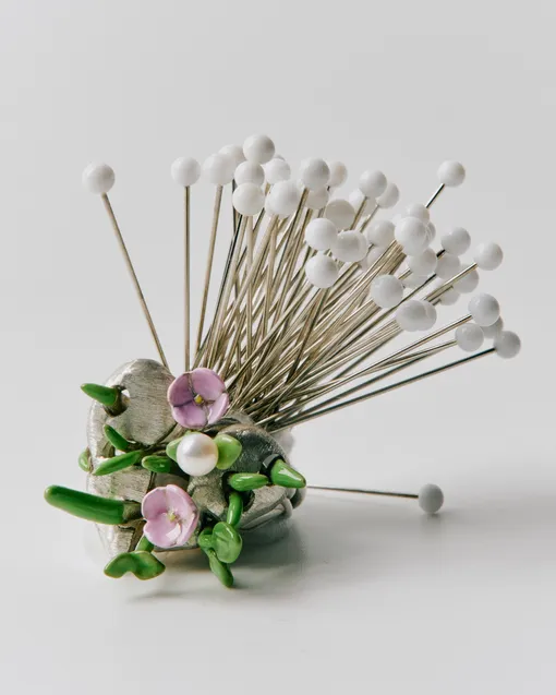 «Около трех лет назад я стала собирать фотографии разных салфеточек, ватных одеял и ваз с цветами, как у бабушки. Особенно много кадров было с геранями — как те, что всегда были на окне в доме бабушки из детства. В какой-то момент этот мудборд воспоминаний захотелось перенести на обувь. Причем на строгую, монохромную, чтобы создать контраст между нежным и грубым», – рассказывает основательница бренда Дарья Миловидова. Так и получился этот прелестный дроп.