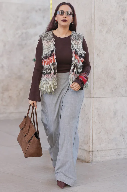 Это мой главный фаворит для повседневной жизни. Прямая штанина держит вертикаль и не подчеркивает колено, что визуально вытягивает силуэт. Слегка расширенные от бедра брюки дает образу «воздух» и выглядят современно, особенно если ткань плотная и не «липнет» к ноге. Такие силуэты отдельно отмечают модные редакторы: легкий клеш сейчас в тренде.