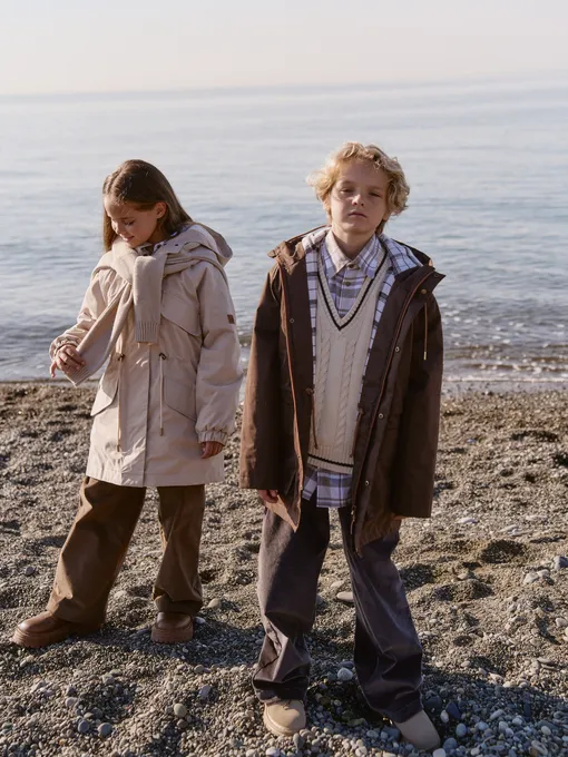 Палитра в линейке природная и спокойная: оттенки песка, неба, весенних первоцветов – нежно, свежо, по-детски трепетно. Цвета не спорят с окружающим миром и позволяют сосредоточиться на главном — игре. Трикотажные костюмы, вязаные джемперы, жилеты и фланелевые рубашки собираются в многослойные комплекты для разнообразных городских маршрутов. Потому что сейчас самое время, чтобы исследовать этот мир!