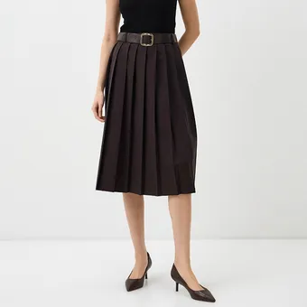 Если ты предпочитаешь лаконичные образы, выбирай модели уже с поясом — как правило аксессуар выполнен из ткани в тон юбке. Если хочешь больше акцентировать талию — выбирай кожаный ремень с эффектной пряжкой.