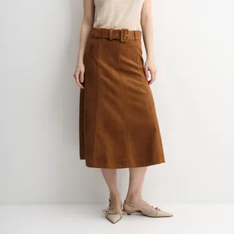 Как и в случае с брюками, ремень на юбке добавляет шикарный акцент образу и красиво подчеркивает талию.