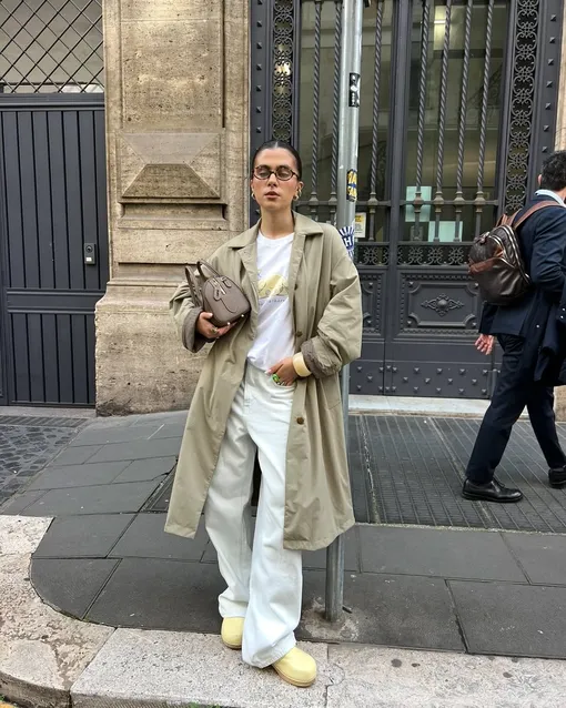 С базовым тренчем и мешковатыми джинсами