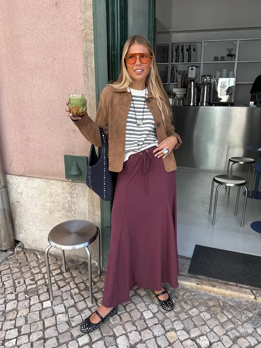 С макси-юбкой и замшевой курткой
