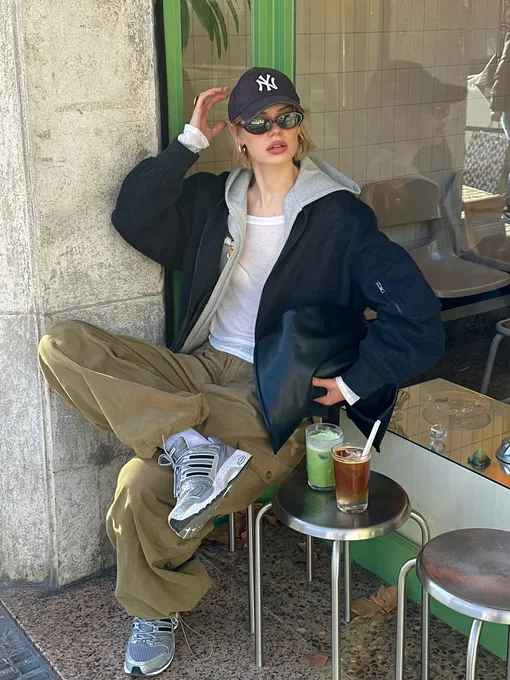 Grandpacore со счетов не списывай – он жив и процветает. И предлагает весной-2026 носить базовый лонгслив с объемной (можно взять на пару размером больше) олимпийкой и брюками карго. Массивные кроссовки или хайкеры завершат комбо.