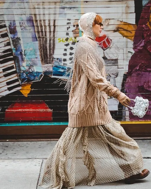 Причем собрать трендовый аутфит можно весьма органично, без перегиба в костюмированную вечеринку. Присмотрись к инфлюэнсерам из Дании и Нью-Йорка (у них мы чаще всего замечаем look’и со средневековыми отголосками): тонкие металлические кейпы – как кольчуга, балаклавы и капоры, расшитые кристаллами и металлической нитью – как шлемы, краги (объемные грубые перчатки) – как финальный штрих в «рыцарском» аутфите. Стильно? Очень. Перебор? Ни капельки!