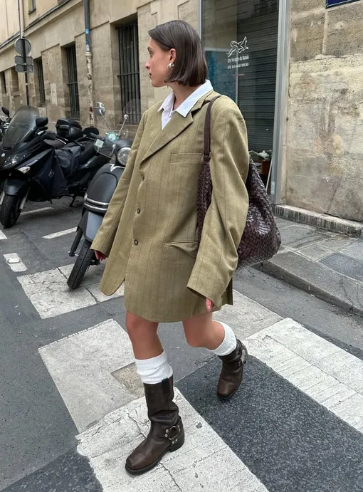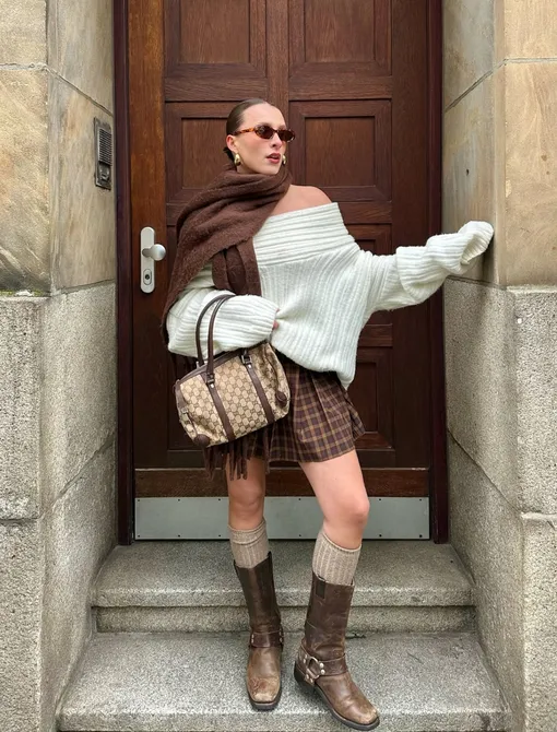 В противовес лаконичным базовым сапогам на полках в магазинов стоят брутальные и даже чуть грубоватые модели обуви – с ремешками, цепями и металлическими пряжками. И их мы тоже обожаем. Носить будем с высокими шерстяными гетрами, как учат фэшн-блогеры. Да, трюк старый, как мир, но все еще эффектный.