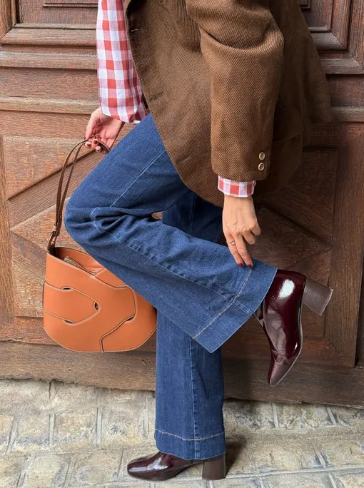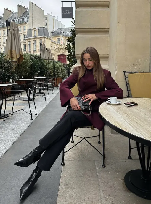 Квадратная форма мыса – классный способ внести изюминку в аутфит. Менять в повседневной капсуле вообще ничего не надо, просто добавь «тупоносые» сапоги. Только у них есть один нюанс: достаточно массивный мыс визуально немного «утяжеляет» ступни. Поэтому, чтобы минимизировать этот неприятный побочный эффект, подбири к сапогам брюки прямого или даже чуть расклешенного кроя.