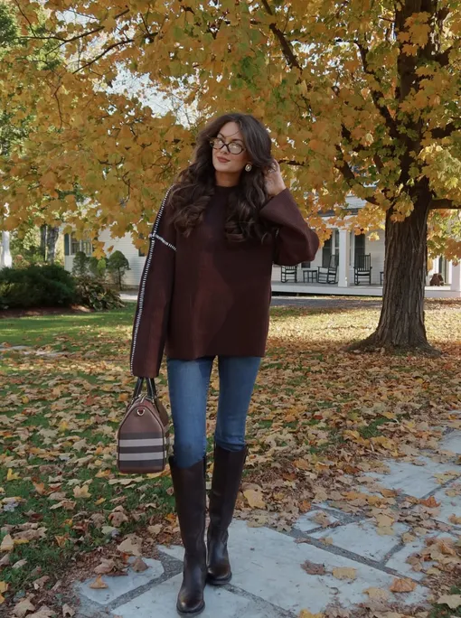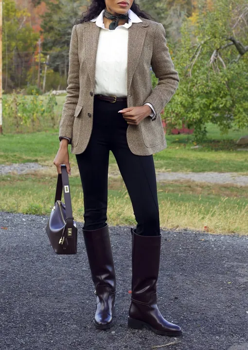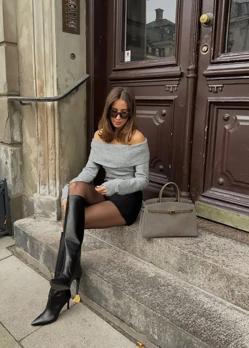 Классические сапоги идеально комбинируются с повседневной одеждой. Особенно с приталенными брюками или леггинсами, которые легко заправить в обувь без всяких складок. Эта база не устаревает!
