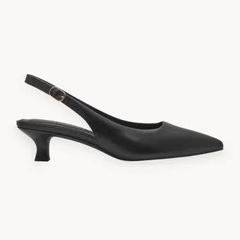 Лучше всего подходят слингбэки на невысоком каблуке kitten heel — и Эльза доказывает это собственным примером.