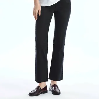 Туфли-лодочки на невысоком каблуке с открытой пяткой придают укороченным брюкам элегантный вид, образ выглядят свежо, современно и в меру шикарно.