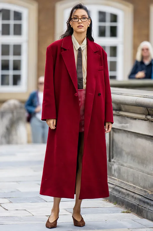 Такая женщина выбирает архитектурные силуэты и асимметричные линии. В ее гардеробе — строгие пальто и кожаные плащи, структурные жакеты, рубашки с необычным кроем, брюки с контрастными швами, прямые или трапециевидные юбки, минималистичные сумки.